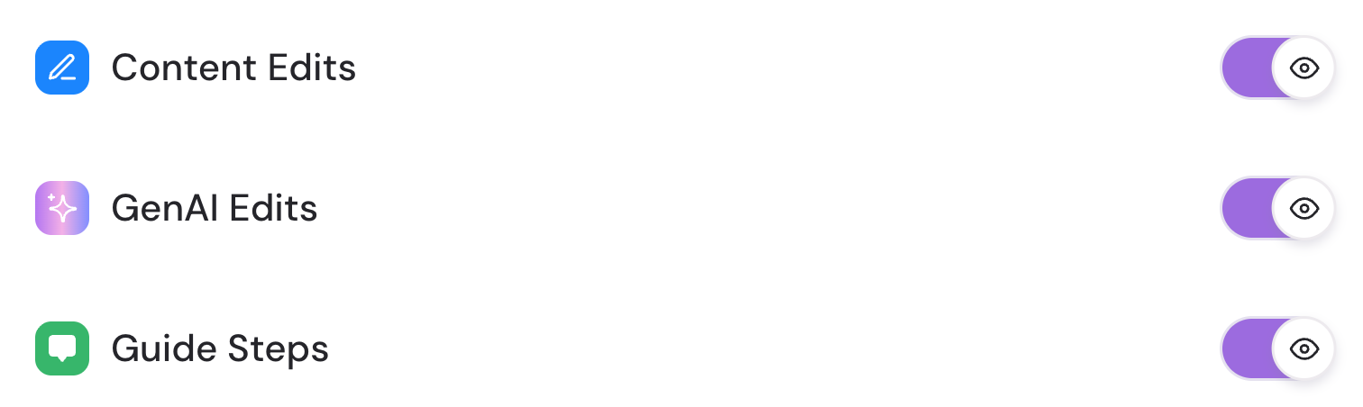 - Content Edits — Shows indicators for manual content changes (like text edits).