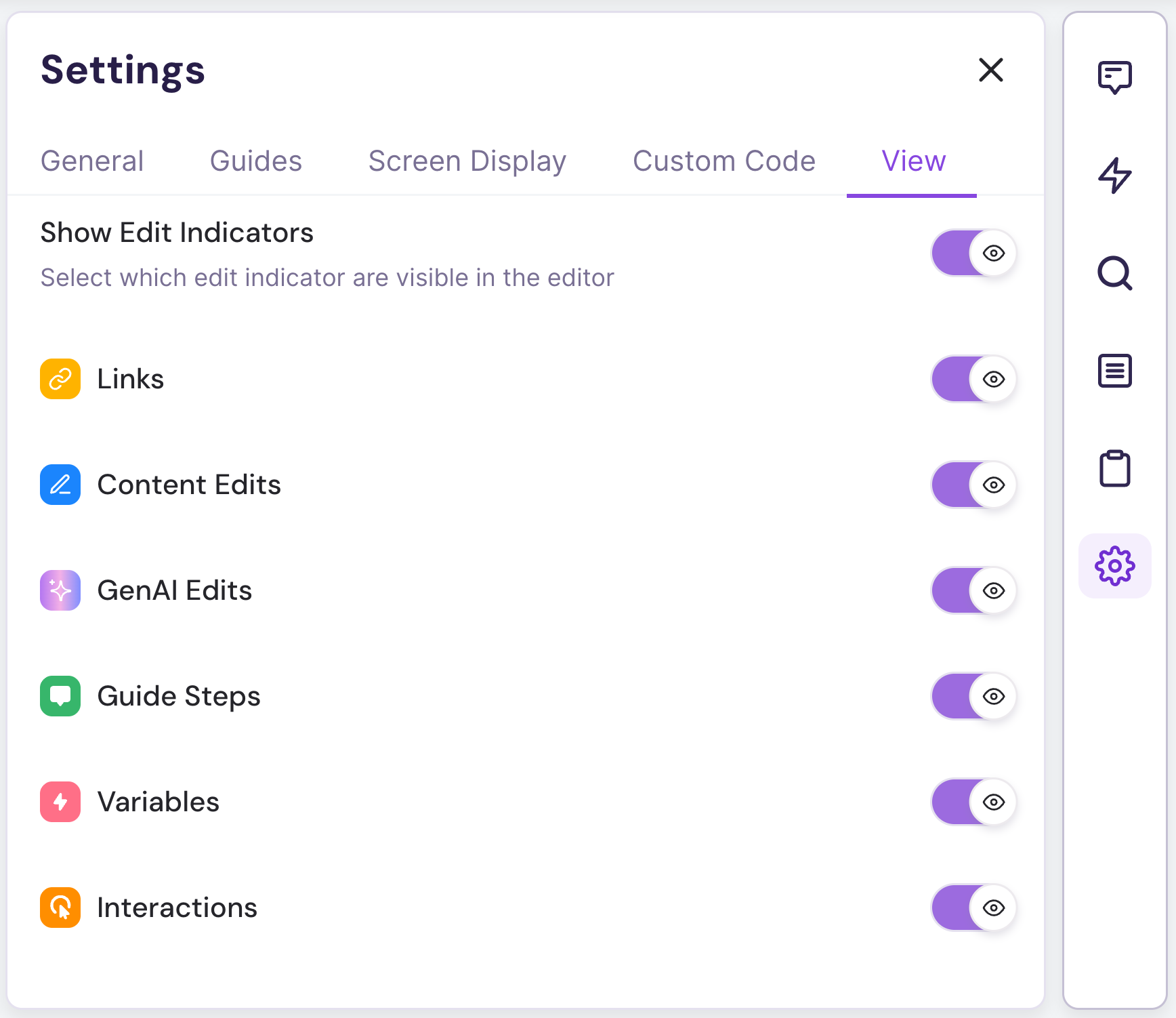 When you’re building and polishing a demo, Walnut shows small on-screen “edit indicators” to help you spot where changes have been applied (like content updates, variables, guide steps, and more). They’re useful — but when you’ve made a lot of edits, the editor can start to feel visually busy.