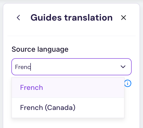 - In the Source language dropdown, select the language your team is authoring in (e.g., French, Dutch, Spanish).